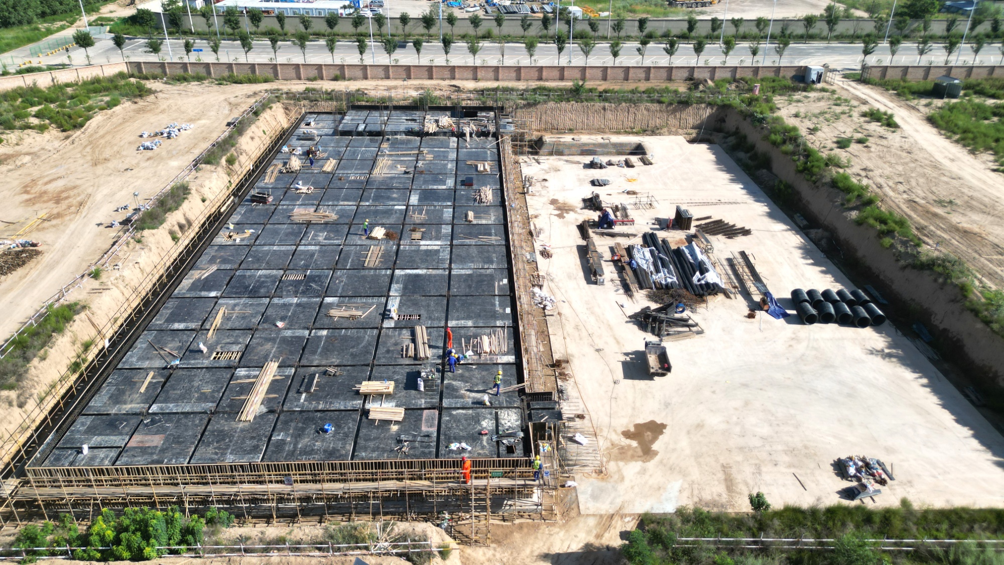 近日,西峰工业园区南部石化产业园内,庆阳市天然气提氦与储备调峰一体化项目建设正酣,工人们有序开展管廊基础和地管施工。